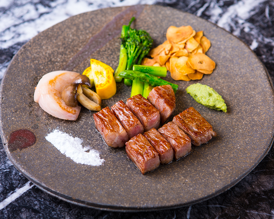 和牛の最高峰”KING OF WAGYU BEEF”であるA5ランクの神戸牛を1頭買いしている吉祥吉グループだからこそ、様々な部位を選んでいただき、熟練シェフがお客様の為に鉄板焼きで調理致します。